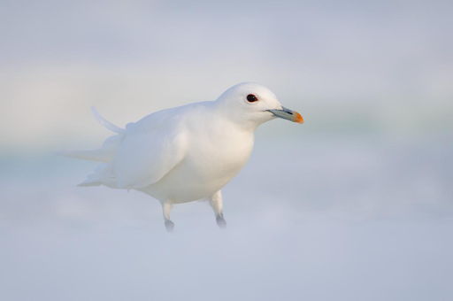 An aerial companion to the polar bear, Ivory Gulls are attracted to blood red upon the white snow, supplementing their diet by scavenging polar bear kills. These two species are bound in their unfortunate fate: as the pack ice upon which the bears depend vanishes in the heat of our new climate, so too do the gulls’ cold-loving lantern fish and bear-proffered carrion. Audubon, who obtained only specimens, painted an adult and a juvenile; yet that very image of continuity by generations is now fading. As ocean temperatures break record levels of heat, the entire Arctic system breaks down, leading to extinction by starvation for these magnificent gulls. In Audubon’s day - the cusp of industrialization and the conquest of the West with all its slaughter of bison and passenger pigeons - extinction of species seemed impossible, and it went against Biblical teachings. There remained the belief that, whatever the observed diminishment, there would always be more. Only in the mid-twentieth century, did scientists create surveys and methods to measure populations and begin to understand decline. Now, with our ability to travel globally – to explore and exploit every corner and crevice of this earth - and our knowledge of history and science, we have now a terrible omniscience: we can precisely quantify a species’ disappearance. We witness, in the steady drip of melting ice, and how this exquisite, wild white bird fades into the oblivion of extinction.